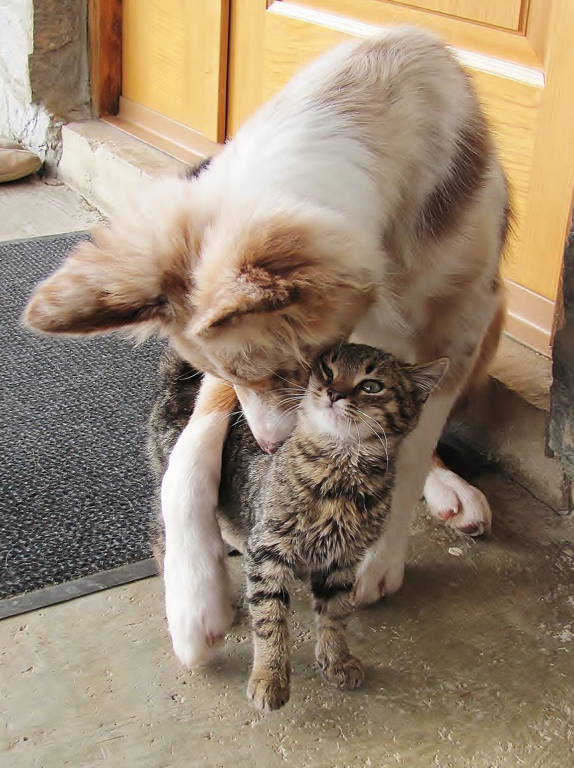 Najlažje bomo združevali mlade živali, pa naj bo to mucek ali kužek. Živali bosta skozi igro spoznavali naravo drugo druge in se pozneje ne bosta napadali. Malo težje bomo združevali starejše živali, saj ima marsikatera že prirojen strah iz preteklosti. Večkrat bomo dosegli, da se bo mlad mucek privadil psa kot nasprotno. A vsaka žival je edinstvena.