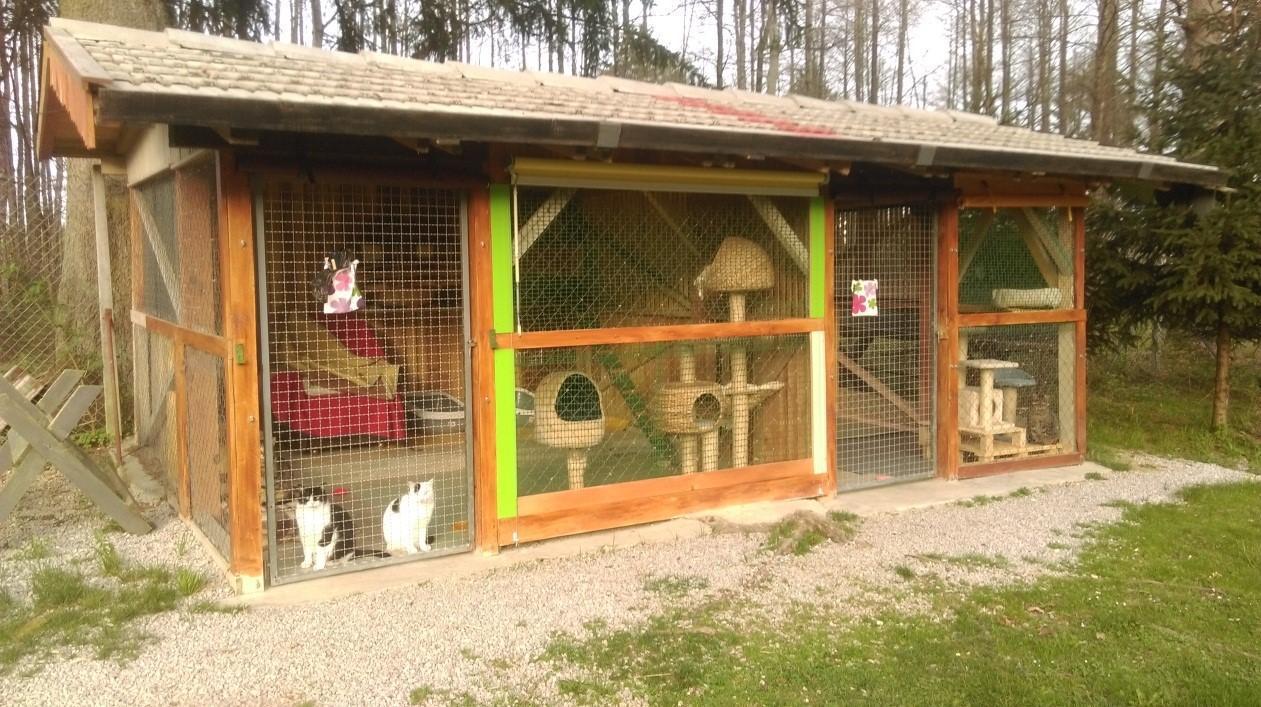 V ograjenem prostoru in zunaj njega se zadržuje kar lepo število odraslih muc, družbo pa jim dela psička Đuka, ki so jo prav tako našli zapuščeno v vreči, še z nekaj pasjimi mladiči, ki so jih kasneje oddali, Đuka pa je ostala pri njih. Posest obdaja ograja, mucki pa se nemoteno sprehajajo zunaj in znotraj nje. Iz pasjih boksov so nastali boksi za mačke, v katerih mačke živijo, se igrajo in spijo. Imajo tudi manjšo hišico,  ki je opremljena s kurjavo na drva, kjer mačke preživljajo mrzle zimske dni. Prav tako pa jih greje slama, ki jo prostovoljci razporedijo po celotni površini spalnih in bivalnih prostorov. Po zaslugi samih članov in prostovoljcev ter obiskovalcev odej, vzglavnikov, praskalnikov in podobnih igral za mucke res ne manjka.  Nekaj starejših mačk biva v svojih prostorih, ker je že prihajalo do sporov okoli teritorija. Starejše “ stanovalke“ se zlepa ne odpovejo svojemu teritoriju.