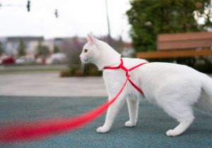 Vaja hoje na mačjem povodcu je koristna vaja, s katero lahko, ko jo enkrat osvojite, svoji mački hkrati omogočite tudi veliko več gibanja na prostem ter redne dnevne sprehode, v katerih bo mačka brez dvoma neizmerno uživala in se tudi dodatno razgibala. Potrebujete mačkam prijazen mačji povodec. Nikoli ne uporabite ovratnice in flexi povodca za pse, saj je za mačka nevaren in se lahko zaduši. Mačji povodec naj bo pritrjen na oprsnico (okoli trupa, nikoli okrog vratu), naj se tesno prilega, jermen pa mora biti pripet na zgornji strani hrbta. Navajanje naj se začne sprva na oprsnico, ki jo mačka nosi doma nekaj minut dnevno. Za opravljeno nalogo sledi nagrada in pohvala. Opazujte mačko in se prepričajte, da se z oprsnico počuti dobro. Ko se mačka navadi na oprsnico, nadaljujte trening še s pripetim jermenom povodca. Hoja na povodcu naj se najprej izvaja doma, po nekaj korakov, s pohvalo in nagrado. Ko mačka osvoji sprehod po stanovanju, lahko nadaljujete z vajo in s prvim sprehodom na prostem.